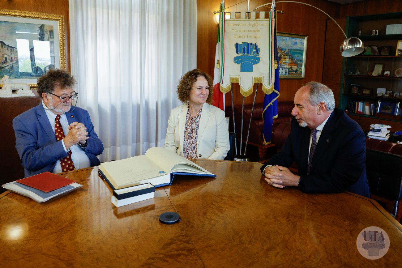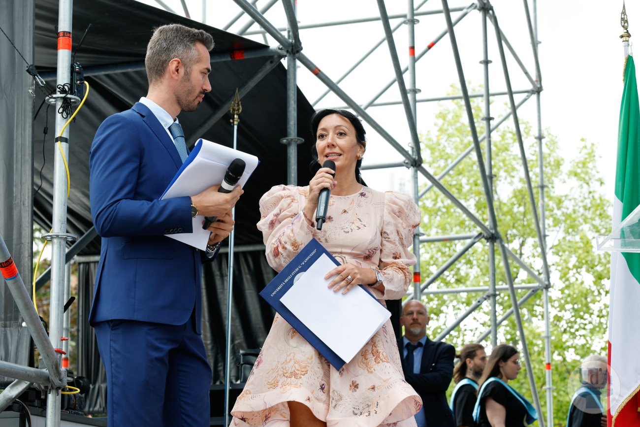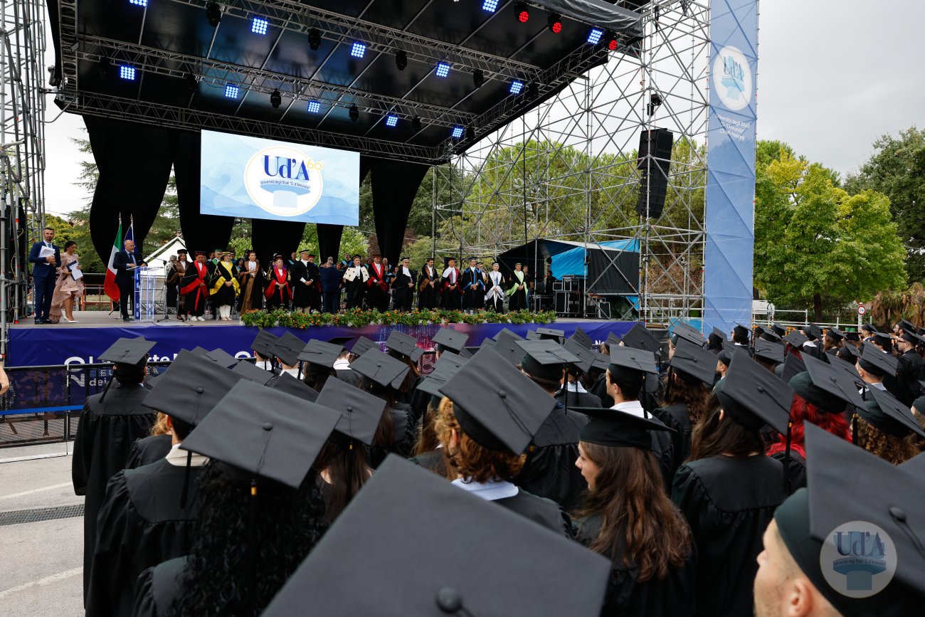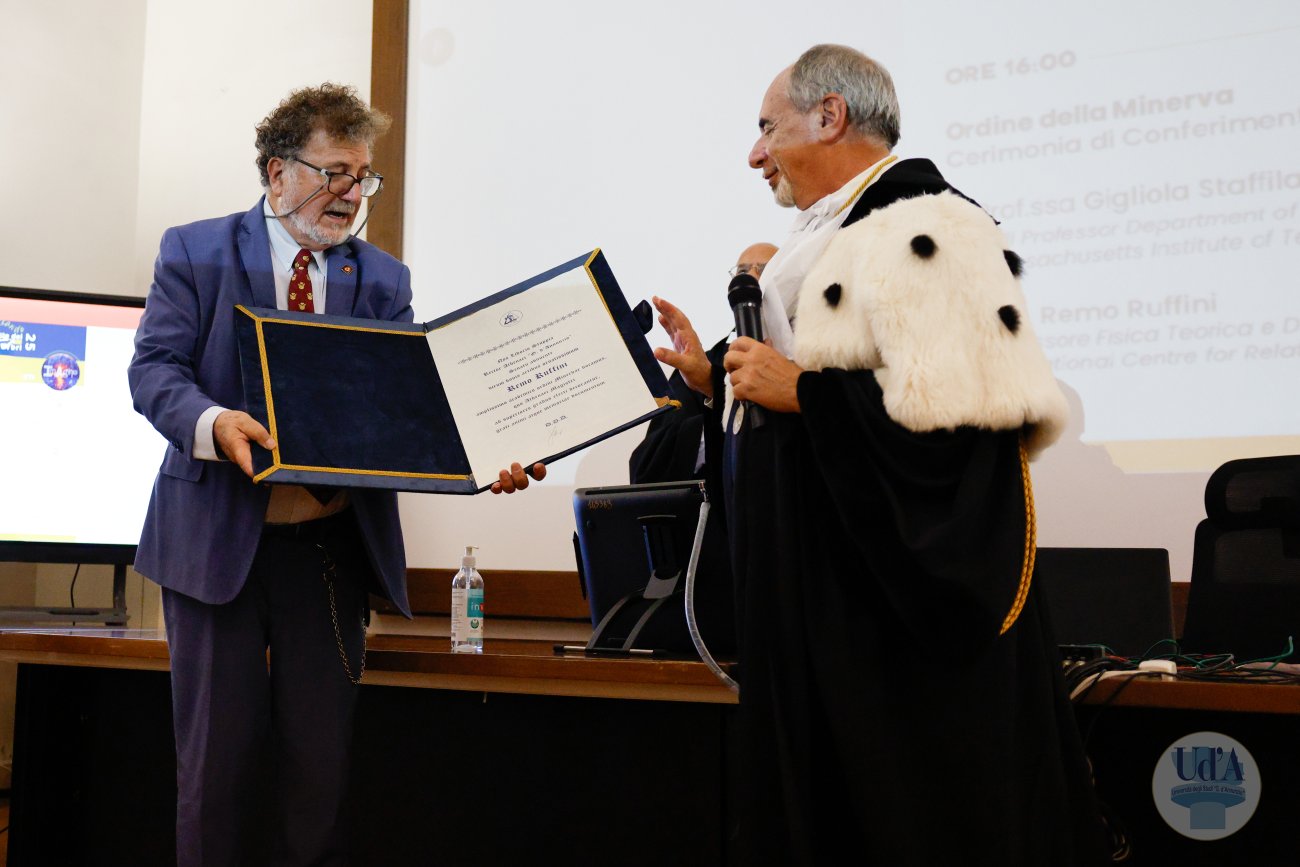 Campus di Chieti - Parcheggio di Lettere 24 settembre 2025, dalle ore 15.00 All’Università “d’Annunzio il Graduation Day e la Cerimonia di conferimento dell’Ordine della Minerva Con una doppia cerimonia ufficiale la “d’Annunzio” prosegue il suo intenso percorso di avvicinamento alla Notte Europea dei Ricercatori 2025, il grande evento organizzato dal Gruppo di lavoro coordinato dalla professoressa Elisabetta Dimauro che anche la Responsabile delle manifestazioni che si svolgono in Ateneo. Il 24 settembre, infatti sono previsti il sia Graduation Day- Festa dei neolaureati dell’Ateneo sia la Cerimonia di conferimento dell’Ordine della Minerva, la più alta onorificenza concessa dall’Università degli Studi “Gabriele d’Annunzio” di Chieti-Pescara.Tutto sarà concentrato nel pomeriggio, a partire dalle ore 15.00 con l’avvio del Graduation Day che si innesterà senza soluzione di continuità con la Cerimonia che vedrà insigniti dell’Ordine della Minerva la professoressa Gigliola Staffilani, Full Professor Department of Mathematics - Massachusetts Institute of Technology (MIT) ed al professor Remo Ruffini, docente di Fisica Teorica e Direttore dell'ICRANet (International Centre for Relativistic Astrophysics Network). I neolaureati potranno quindi ascoltare le lectio magistralis dei due insigni scienziati, che saranno per loro autorevoli discorsi motivazionaliUlteriori informazioni nel comunicato stampa allegato Comunicato stampa Locandina Linee di collegamento NdR 2025 GRADUATION DAY - 24 settembre Video UdA sull'evento I momenti salienti della giornata