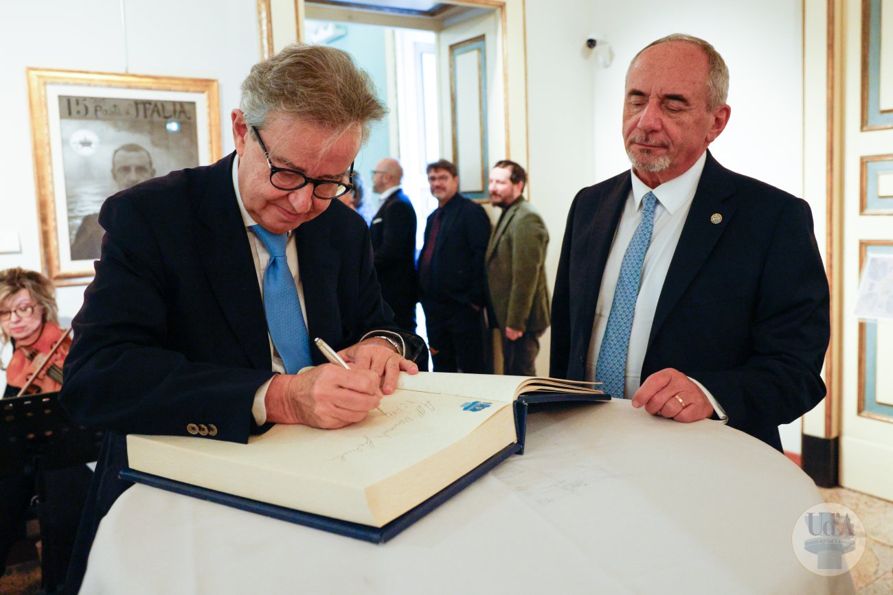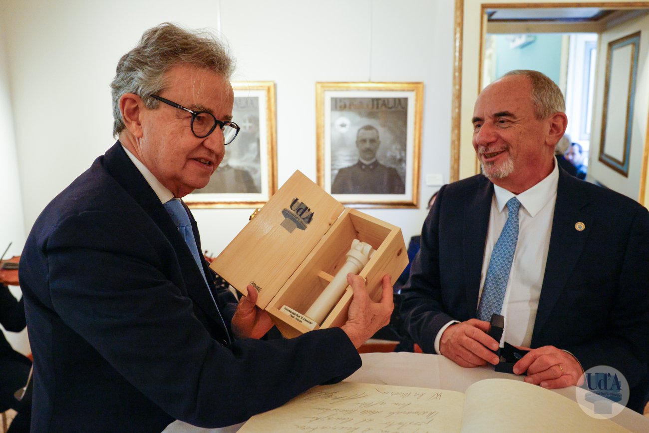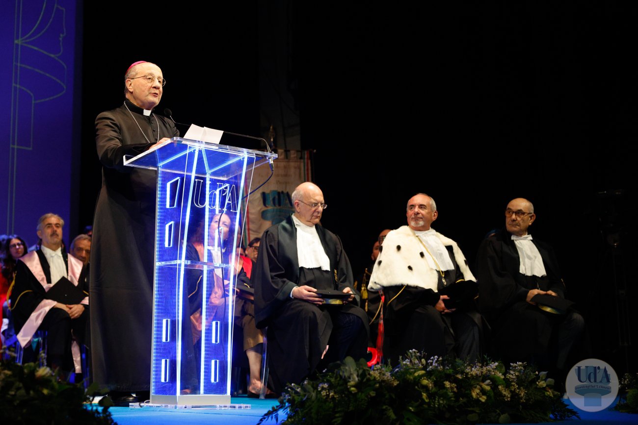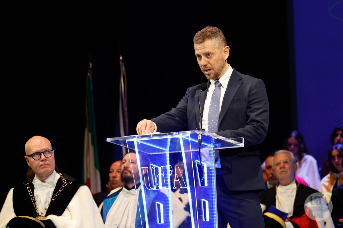 Teatro Marrucino - Chieti 25 marzo 2026, ore 11.00 La Cerimonia di Inaugurazione dell'Anno Accademico 2025/2026 si è tenuta il 25 marzo 2026, alle ore 11.00 presso il Teatro Marrucino di Chieti.Sono intervenuti il Magnifico Rettore Liborio Stuppia, il Direttore Generale Paolo Esposito, la Prof.ssa Lorella Martinelli in rappresentanza dei Docenti, il Dott. Glauco Conte per il Personale Amministrativo e Tecnico, il Sig. Basher Amuri in rappresentanza degli Studenti.Alla cerimonia ha partecipato il Presidente del Consiglio Nazionale delle Ricerche Andrea Lenzi.Il contributo musicale è stato curato dal Coro di Ateneo, UdA InCanto. Comunicato stampa Locandina Libretto Inaugurazione a.a. 25/26 Diretta facebook dell'evento Servizio RAI TGR Abruzzo Servizio di Rete8 Servizio di Super J Servizio video LAQTV Servizio di Tele Regione canale 17 Servizio di Telemax Servizio di TV6 Reportage - La "d'Annunzio" nel cuore del Sudan I momenti salienti della giornata Registrazione integrale della Cerimonia I momenti salienti della cerimonia