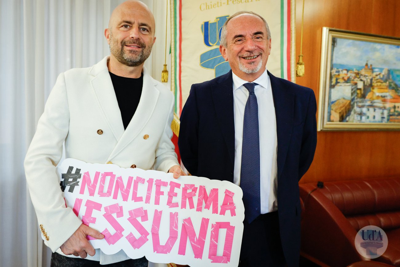 Auditorium Rettorato, Campus Chieti 16 aprile 2026, ore 10.30 Torna all’Università degli Studi “G. d’Annunzio” Chieti - Pescara la campagna sociale motivazionale #NonCiFermaNessuno di Luca Abete. L’evento, che si configura come un Laboratorio dei Linguaggi della Comunicazione diretto dall’inviato di Striscia la notizia, è in programma giovedì 16 aprile, a partire dalle ore 10.30, presso l’Auditorium Rettorato nel Campus di Chieti.Cuore pulsante del progetto migliaia di ragazzi che nei talk saranno protagonisti di testimonianze di coraggio e resilienza che daranno vita al podcast “Va tutto bene. Anzi no”. La campagna anti-littering e il coinvolgimento di studenti Erasmus saranno le grandi novità dell’edizione 2026 in cui studentesse e studenti saranno divulgatori dei valori della campagna sociale. La tappa di Chieti sarà infine la terza della sesta edizione del Premio #NonCiFermaNessuno che in autunno riunirà 50 atenei italiani in un grande evento conclusivo. Ulteriori informazioni negli allegati Locandina Comunicato stampa Video Ud'A sull'evento