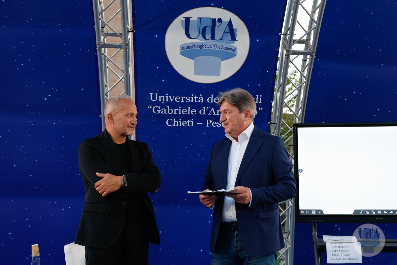 Campus di Chieti - Piazzetta di Lettere 19 settembre 2025 - ore 18.30 Venerdì prossimo, 19 settembre, alle ore 18,30 ci sarà il primo appuntamento tra quelli programmati in “Aspettando La Notte Europea dei Ricercatori 2025” che precedono il grande evento del 26 settembre. L’organizzazione è curata da un Gruppo di lavoro coordinato dalla professoressa Elisabetta Dimauro che è anche Responsabile delle manifestazioni che si svolgono nell’Ateneo. Il 19 settembre, nella Piazzetta di Lettere (Campus di Chieti), sarà presentato al pubblico il libro “Le Notti del Mannaro” scritto da Paolo Esposito, Direttore Generale dell’Ateneo. L’incontro con l’autore sarà condotto dal giornalista Nino Germano mentre brani del libro saranno letti da Luca Ward. Dopo questa prima serata, seguiranno altri appuntamenti, tra i quali, il 24 settembre, il “Graduation Day”, Festa dei neolaureati della “d’Annunzio” e la Cerimonia di conferimento dell’Ordine della Minerva ai professori Gigliola Staffilani e Remo Ruffini.Ulteriori informazioni nel comunicato stampa allegato Comunicato stampa Locandina Video Ud'A sull'evento I momenti salienti della serata