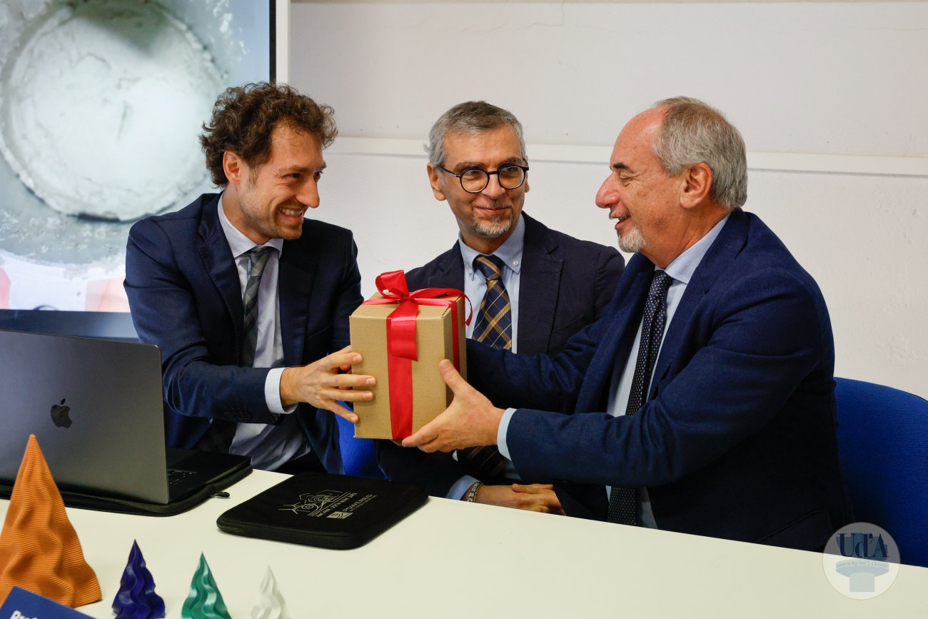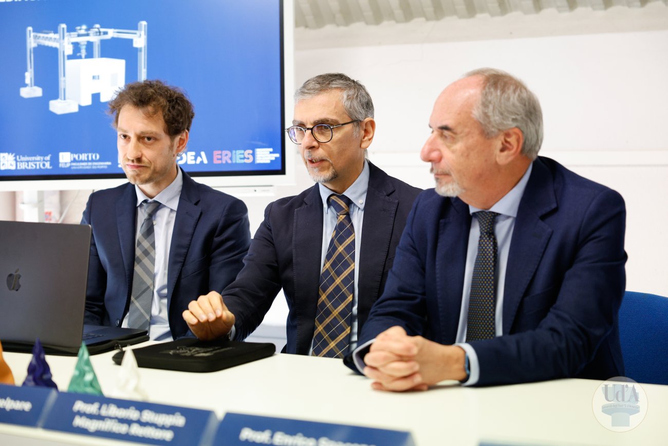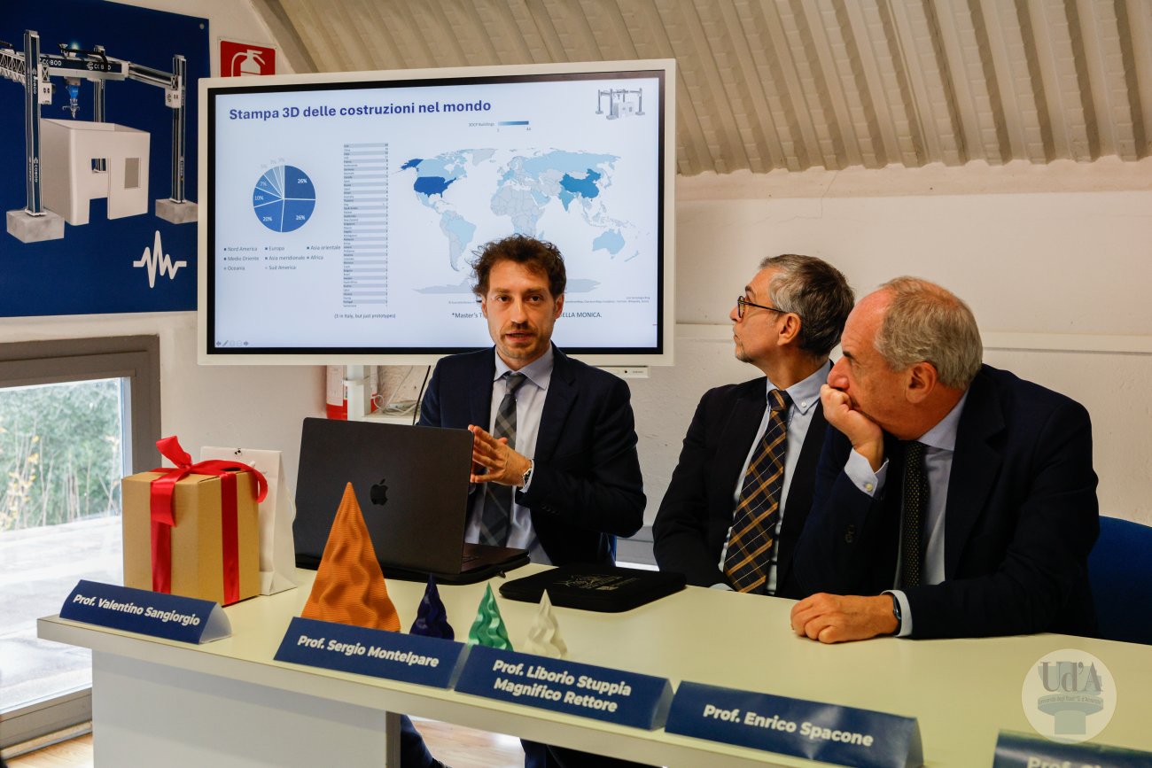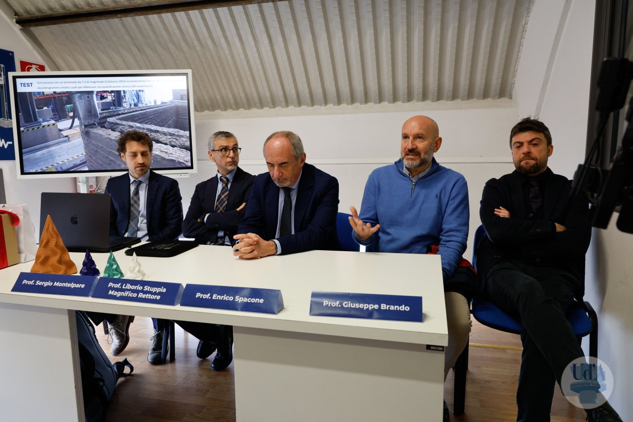 2 Dicembre 2025 L’Università degli Studi “Gabriele d’Annunzio” di Chieti-Pescara ha condotto il primo test al mondo su un edificio realizzato mediante stampa 3D e sottoposto a prove su tavola vibrante. L’esperimento sarà illustrato nel corso della conferenza stampa convocata per martedì 2 dicembre, nella sede del laboratorio SCAM (Sperimentazione, controllo, analisi e modelli) della “d’Annunzio” (via Pantini n° 76, Pescara), alle ore 11:00. Parteciperanno: il Rettore della “d’Annunzio”, Liborio Stuppia, il Direttore del Dipartimento di Ingegneria e geologia (InGeo), Sergio Montelpare, i professori Enrico Spacone, Guido Camata e Valentino Sangiorgio che hanno condotto l’esperimento, il coordinatore dello SCAM, Giuseppe Brando, ed il Direttore Generale dell’Ateneo, Paolo Esposito. Durante la conferenza stampa è previsto un minitour per i giornalisti nel Laboratorio dove sarà possibile vedere in azione il robot KUKA KR50. Invito Conferenza Stampa Comunicato stampa Servizio RAI TGR Abruzzo Servizio di Rete 8 Servizio di Super J Servizio di TV6